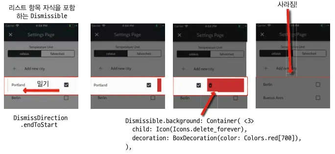 Dismissible 위젯 같은 특별한 상호작용 위젯
