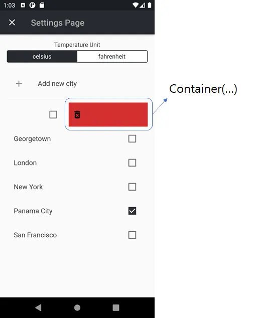 구체적인 예제 코드로 제스처 감지기를 살펴보자. 날씨 앱에서는 forecast 페이지에서 GestureDetector 위젯을 사용한다. 하면을 두 번 탭하면 온도 단위가 바뀐다.