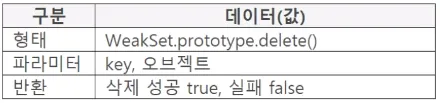 WeakSet 인스턴스에서 value와 일치하는 엘리먼트를 삭제합니다.