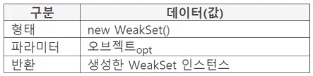 WeakSet 인스턴스 생성, 반환