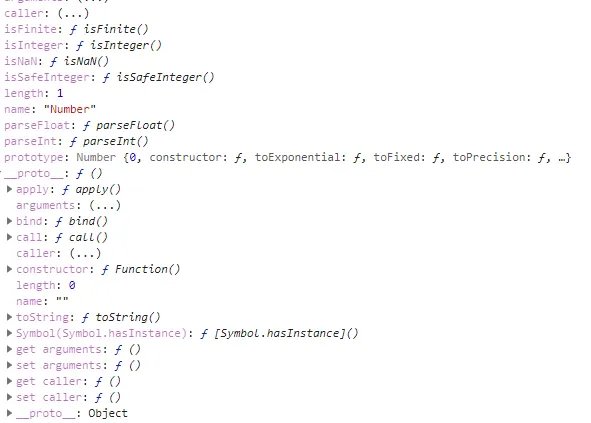 Number 오브젝트의 모든 내용을 복사해 가져오는 것은 아니고 prototype이라는 property안에 정의된 내용들만 복사해서 인스턴스에 __proto__라는 프로퍼티에 들어가있게 됩니다.