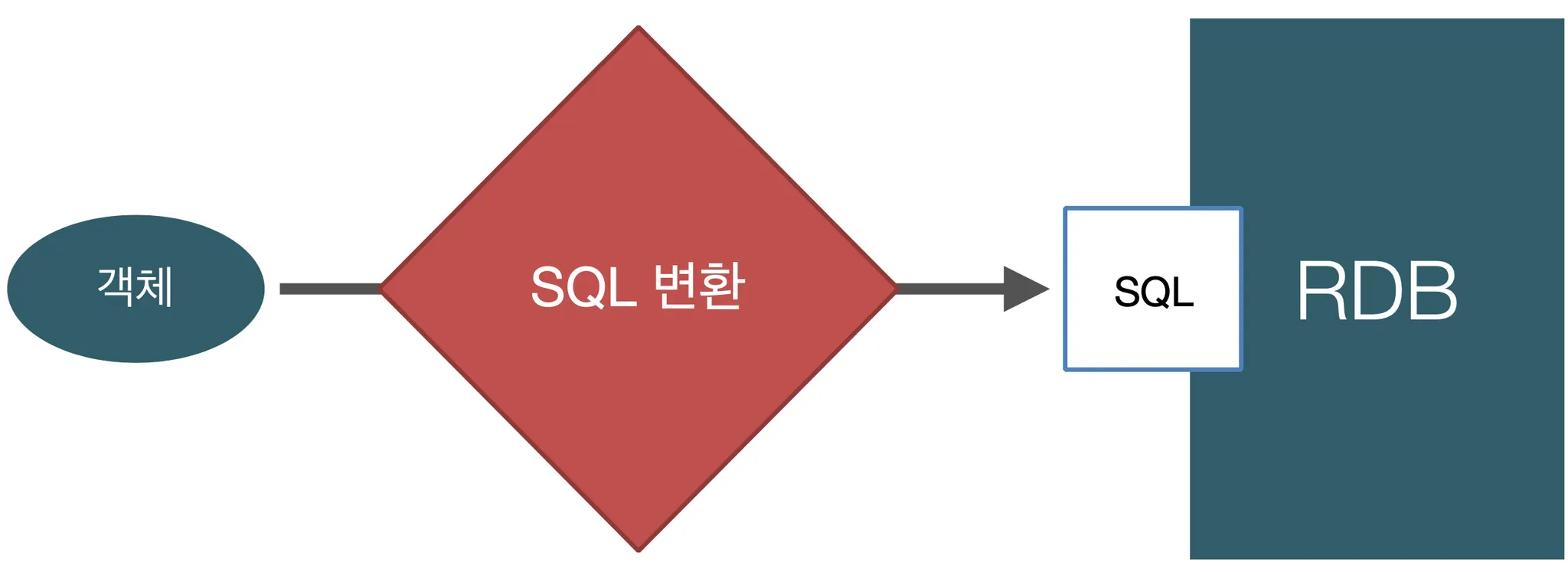 객체를 SQL로 변환해서 RDB에 저장하는 변환과정을 개발자가 해야 한다.