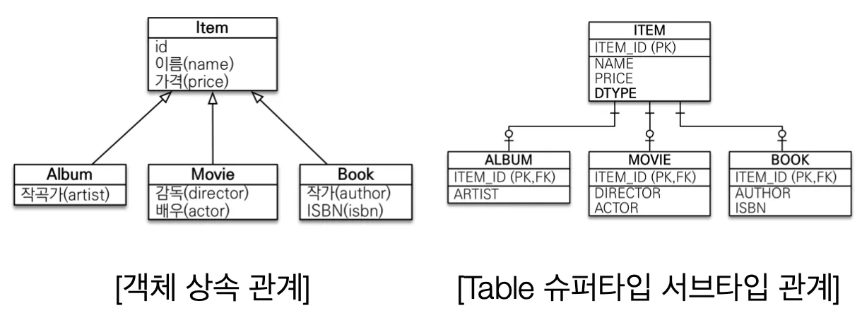 객체의 상속관계와 유사한 관계형 데이터베이스의 개념으로 Table 슈퍼타입, 서브타입 관계가 있다.