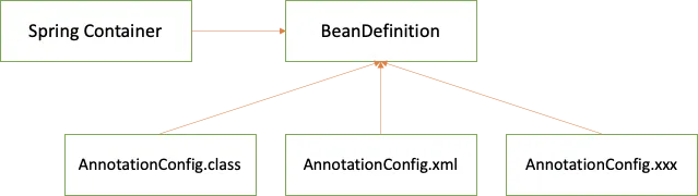 다양한 방식의 설정정보를 BeanDefinition 인터페이스화하면 스프링 컨테이너로 만들 수 있다.