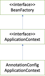 우측 그림을 하나씩 살펴보면, 최상단에 BeanFactory라는 인터페이스가 있다. 이는 스프링 컨테이너의 최상위 인터페이스로 스프링 빈을 조회및 관리하는 역할을 한다. 우리가 지금까지 사용한 getBean 메서드들이 모두 BeanFactory가 제공하는 기능이다.