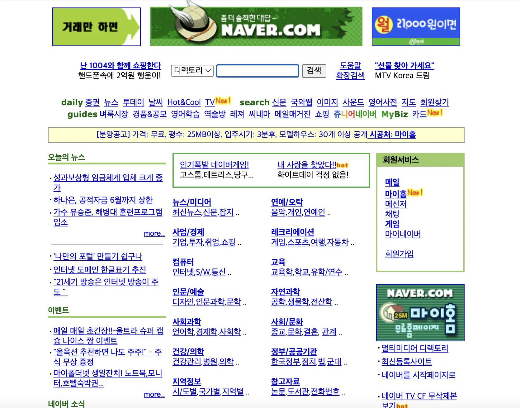 옛날 네이버 메인화면