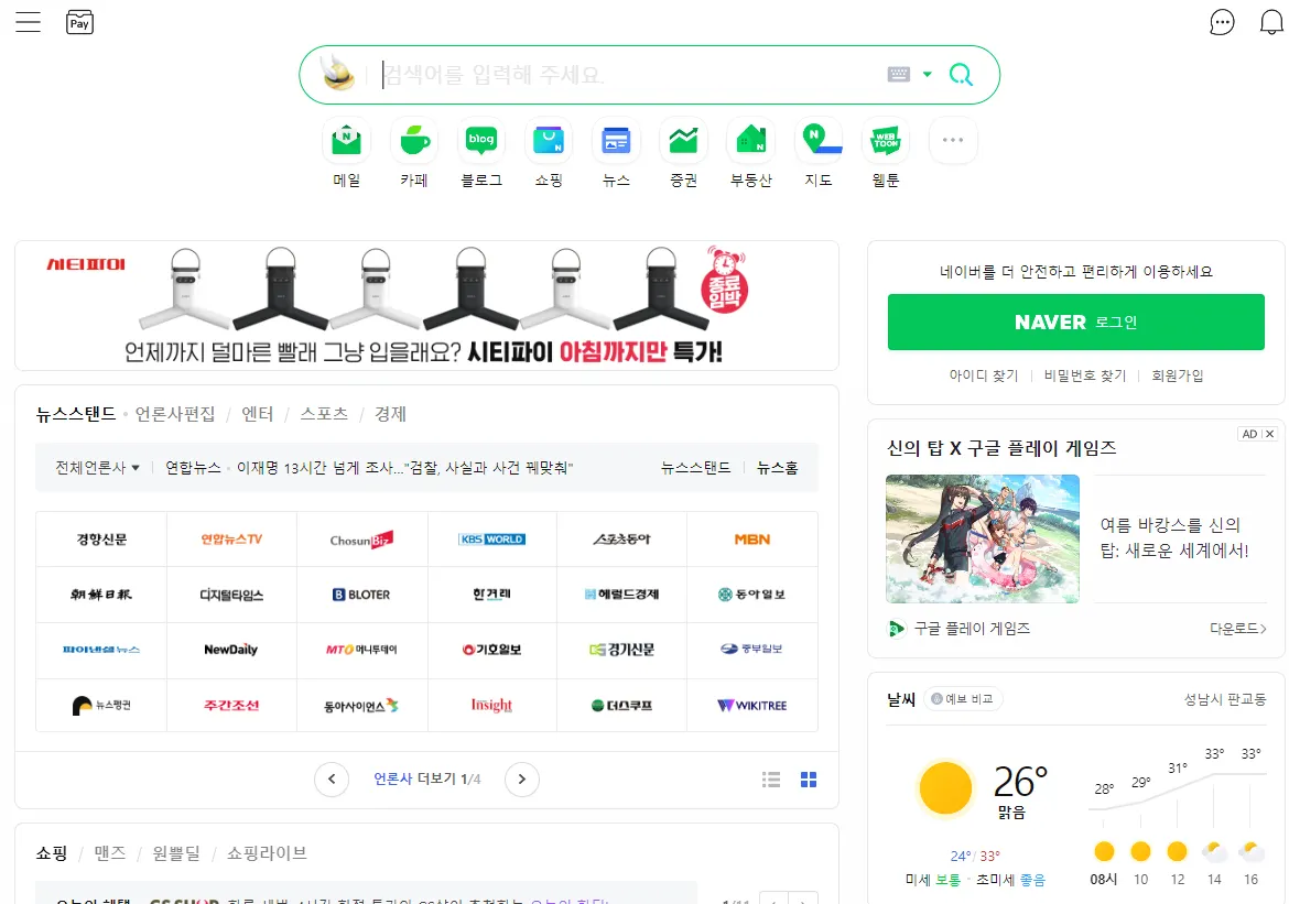 최근 네이버 메인화면