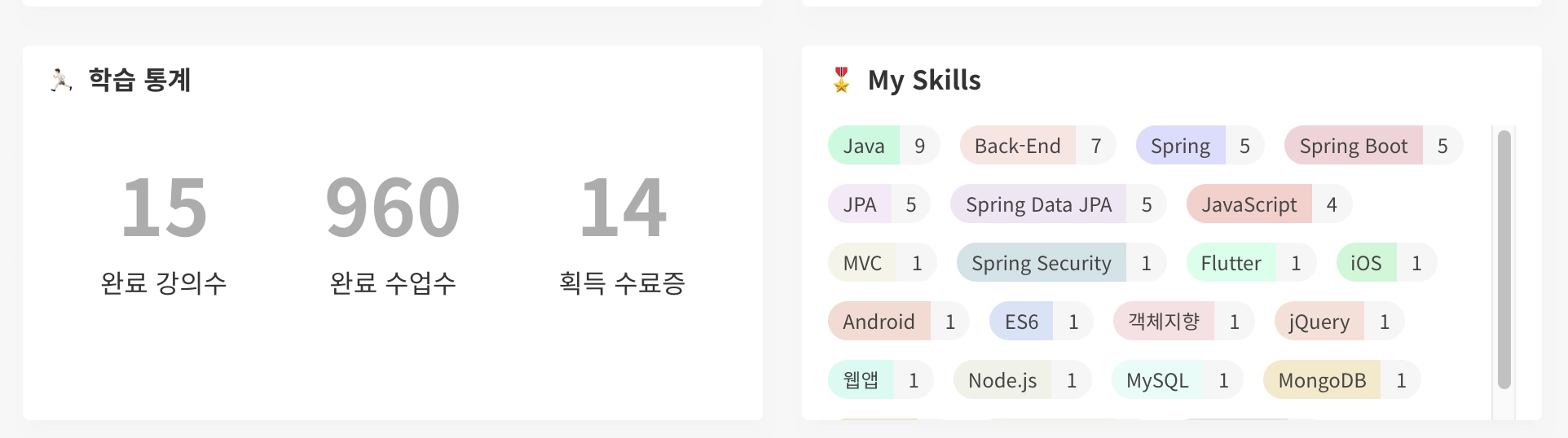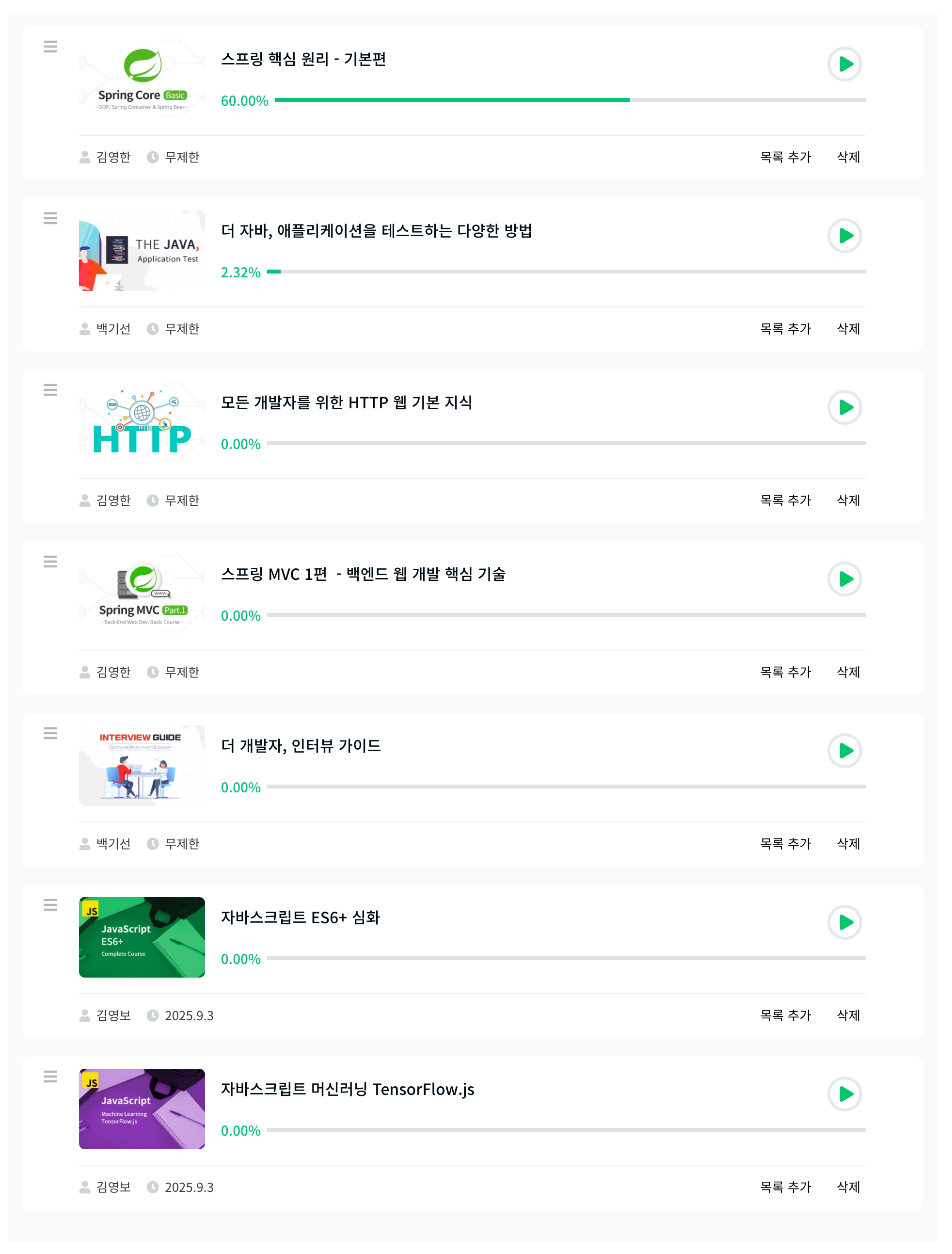가장 큰 비용을 투자한 ATDD는 그래도 무사히 마쳤지만, 책과 강의는 100% 다듣고 수료증까지 받고 블로그에 정리도하고 깃에다가도 해당내욕 학습해서 올리기까지 해야 들었다고 할 수 있는데 그런의미에서 들었다고 할 수 있는 강의가 몇 없는 것 같다. 작년에 했던 올해 목표중 하나가 강의 1000편이상 보기였는데