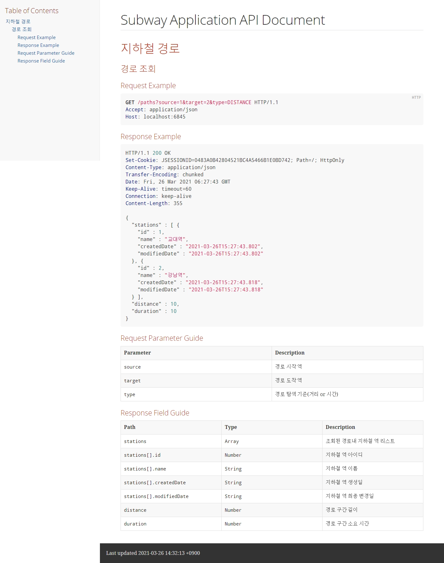 지하철 경로 미션을 테스트코드에서 문서화를 추가해 만든 페이지인데, 가독성도 높고 API의 Request/Response도 한눈에 알아 볼 수 있게 나와서 좋았다.