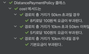 아래 코드는 거리기반 요금정책에 대한 BDD테스트이다.