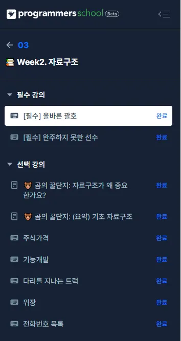 2주차 과정도 문제자체는 모두 해결한 상황이다 .