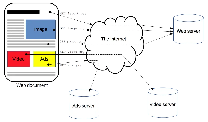 또한, 웹은 불특정 다수의 살마들이 콘텐츠를 자유롭게 열람할 수 있어야 하는데, 사용자가 콘텐츠를 열람하기 위해 그 콘텐츠를 보관하고 처리하는 웹 서버를 직접 조작하는 것은 비현실적입니다. 그렇기에 사용자앞에 있는 디바이스를 웹 클라이언트로, 콘텐츠 자원을 관리하고 처리하는 디바이스를 웹서버로 만들어 인터넷을 연결하는 것입니다.
