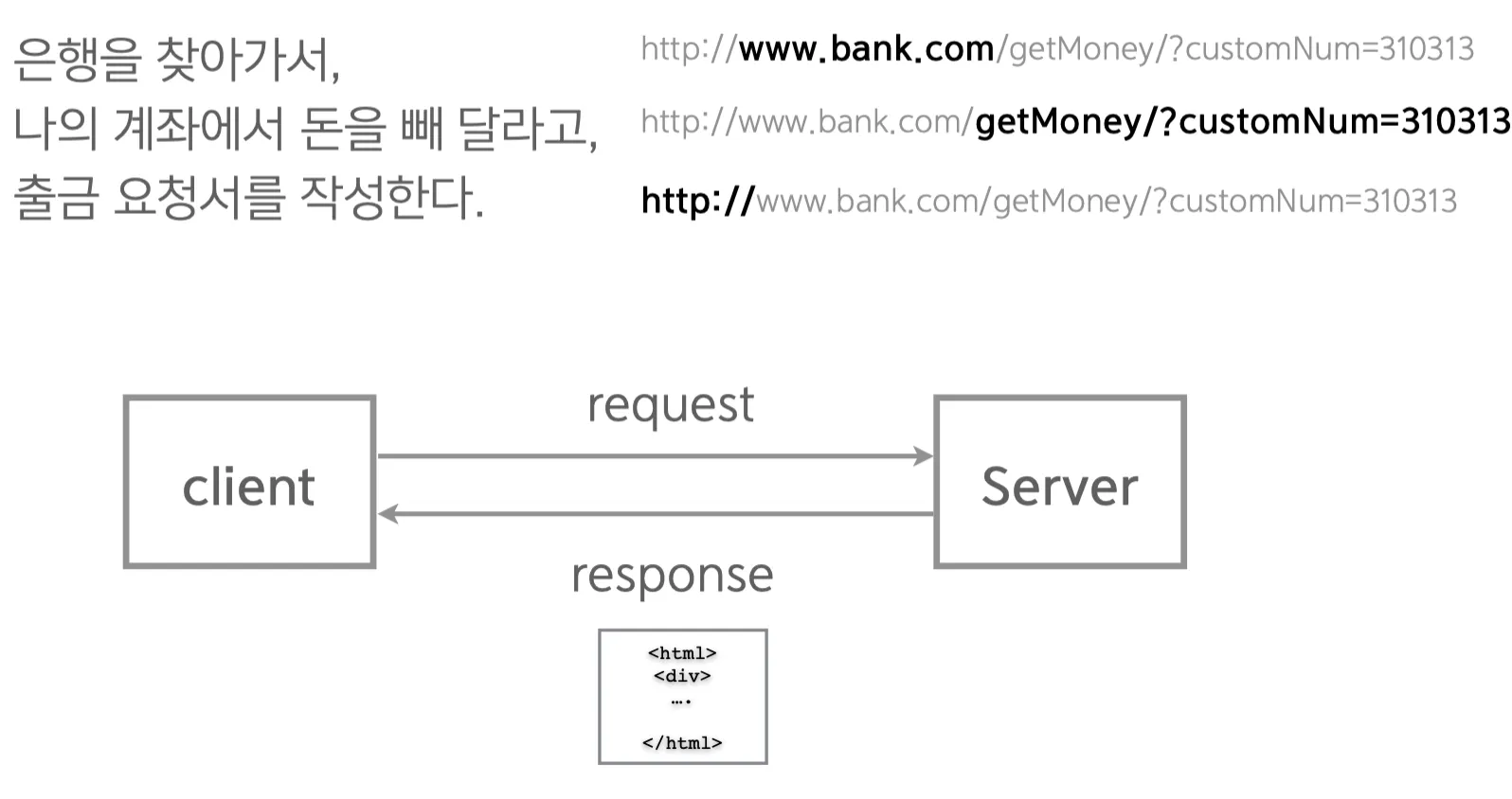 이는 클라이언트(Client)가 요청(Request)하면 서버(Server)가 응답(response)해주는 구조입니다.
