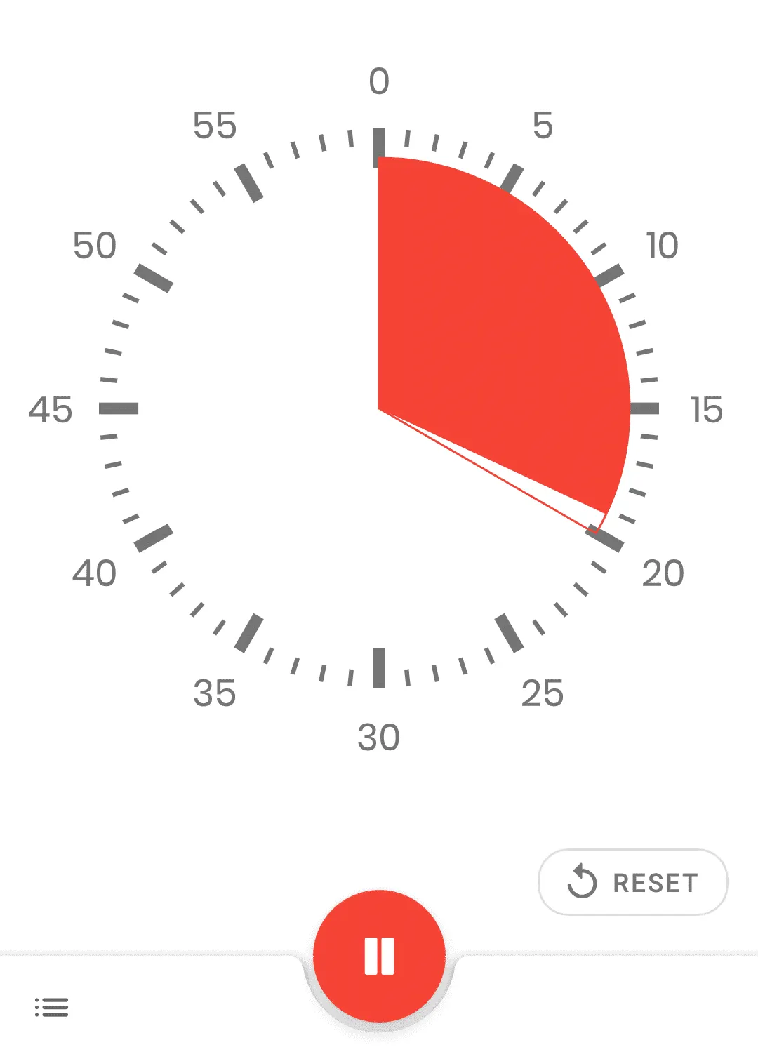 마침 내게는 구글타이머가 실물로는 없었지만, 앱 중에서 비주얼타이머라고 구글타이머와 비슷한 디자인에 기능을 제공하는 애플리케이션이 있었다. 예전에 설치는 했지만 따로 써보진 않았었는데 이번 기회에 써보자고 생각해서 기본적으로 40분 공부시간 20분 쉬는시간정도로 루즈하게 시간을 잡고 시작했다.