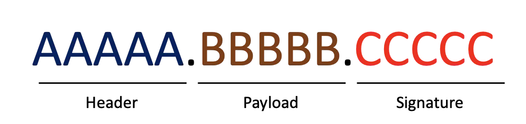 JWT는 dot(.)을 구분자로 3파트로 구분되어 있으며 각각의 파트를 Header, Payload, Signature라 부르며 각각 필요한 정보들을 담아 보관한다.