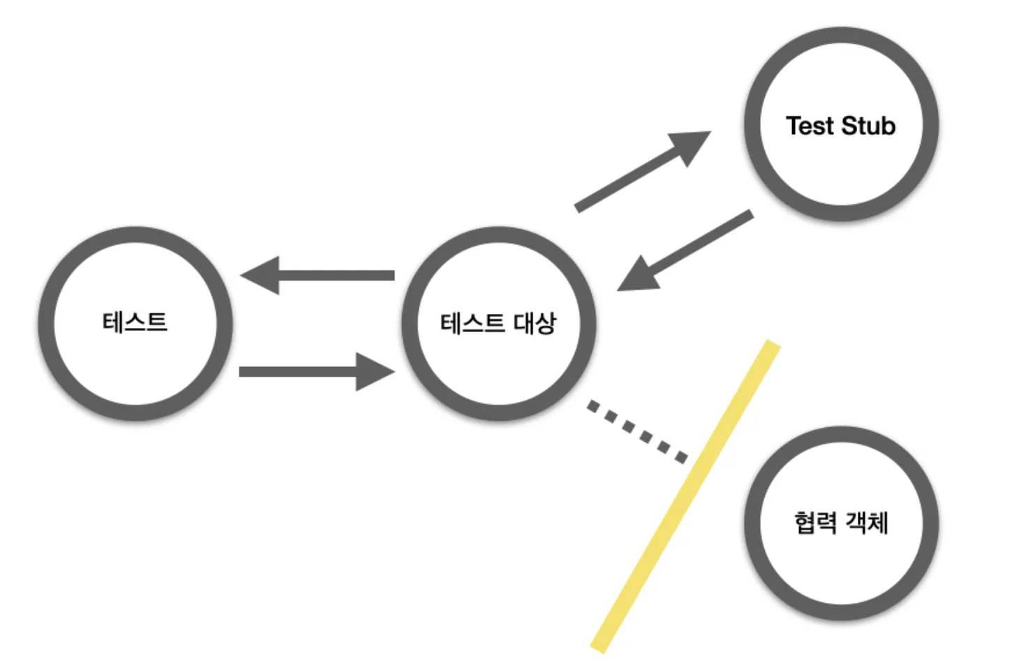 이러한 Test Double에서 미리 준비된 대답으로 답변하는 과정을 Stubbing이라 하는데, 미리 프로그램된 것 외의 것에 대해서는 응답하지 않는다.