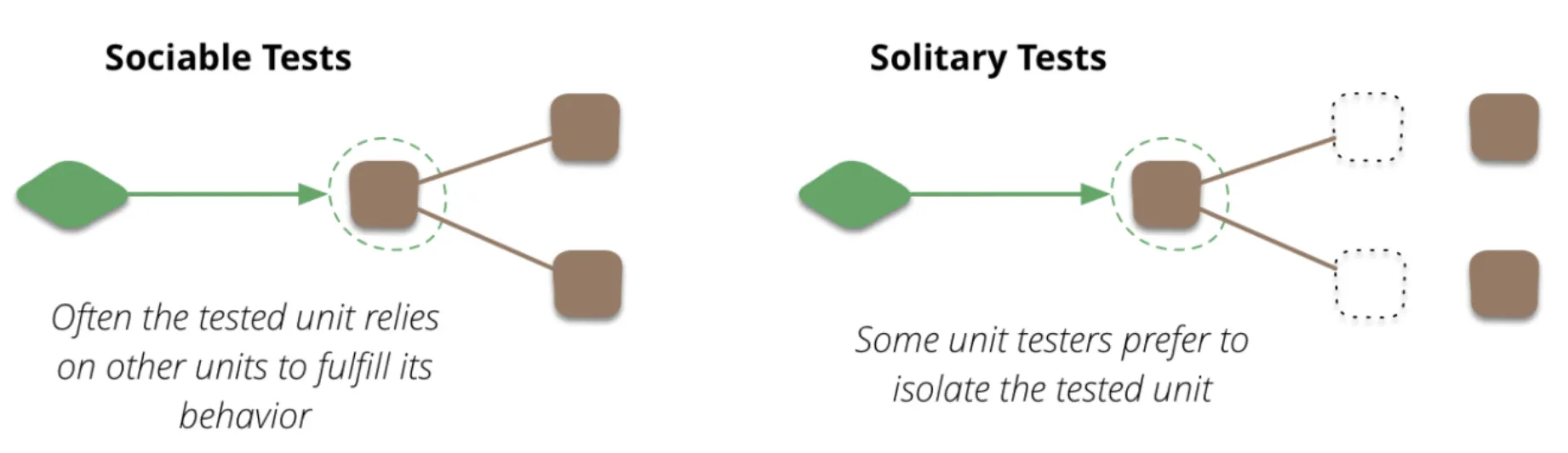 실제 객체를 사용하는 것(좌측)과 고립테스트를 하는 경우(우측)