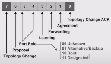 이는 BPDU 의 포맷중 Flags 필드는 8비트인데 기존 STP는 토폴로지 변경과 관련된 두 가지 메세지(TCN, TCA BPDU)만 있지만 RSTP는 8비트 전부를 활용해서 다양한 정보를 주고받는다.
