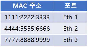 MAC 주소 테이블