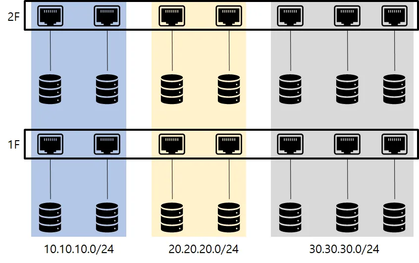 물리적으로 다른 층에 있는 단말끼리 네트워크로 묶을 수 있다.