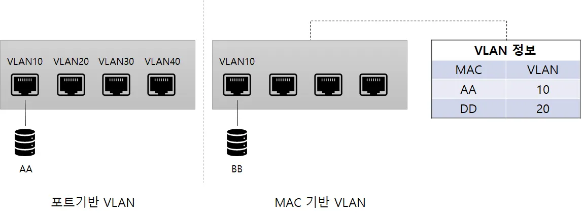 포트 기반 VLAN과 MAC 기반 VLAN