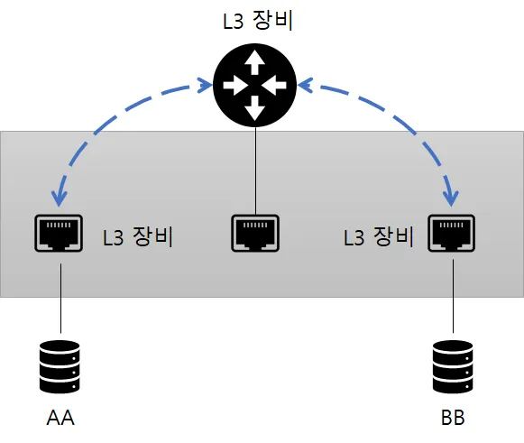 VLAN간의 통신은 별도의 스위치로 취급하기에 L3 라우터 장비가 있어야 한다.