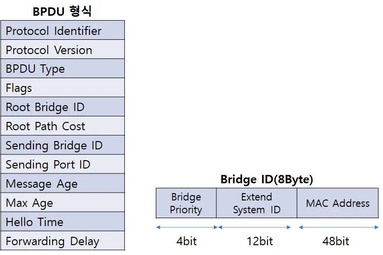 이 BPDU에 스위치의 정보와 식별자가 들어가고 이런 정보들이 스위치 간에 서로 교환되면서 루프파악이 가능해지는데, 이렇게 확인된 루프 지점을 데이터 트래픽이 통과하지 못하게 차단해서 루프를 예방한다.