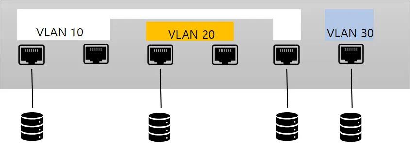 하나의 스위치에 다음과 같이 VLAN을 사용해 네트워크를 분리했다고 하자.