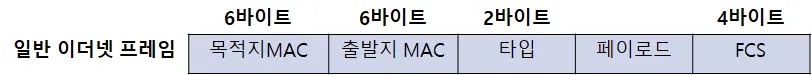 기존 이더넷 프레임은 다음과 같이 구성되어 있다.