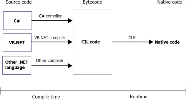 컴파일러에 의해 생성된 중간언어 IL(Intermediate Language)는 JVM(CLR)환경에서 현재 OS환경에 맞는 Native Code로 변환되어 동작한다. 그리고 이 변환과정을 제공함으로써 Managed Code들은 다양한 OS환경에서도 동일하게 동작할 수 있게 된다.
