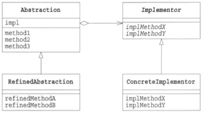 '구현의 클래스 계층'의 최상위 클래스입니다. Abstraction역할의 인터페이스(API)를 구현하기 위한 메소드를 규정하는 역할입니다.
