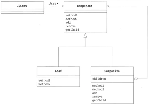Composite 클래스는 Component 객체 자식들을 유지하고 method1과 같은 메소드를 통해(ex:getSize()) 자식들에게 전달합니다.