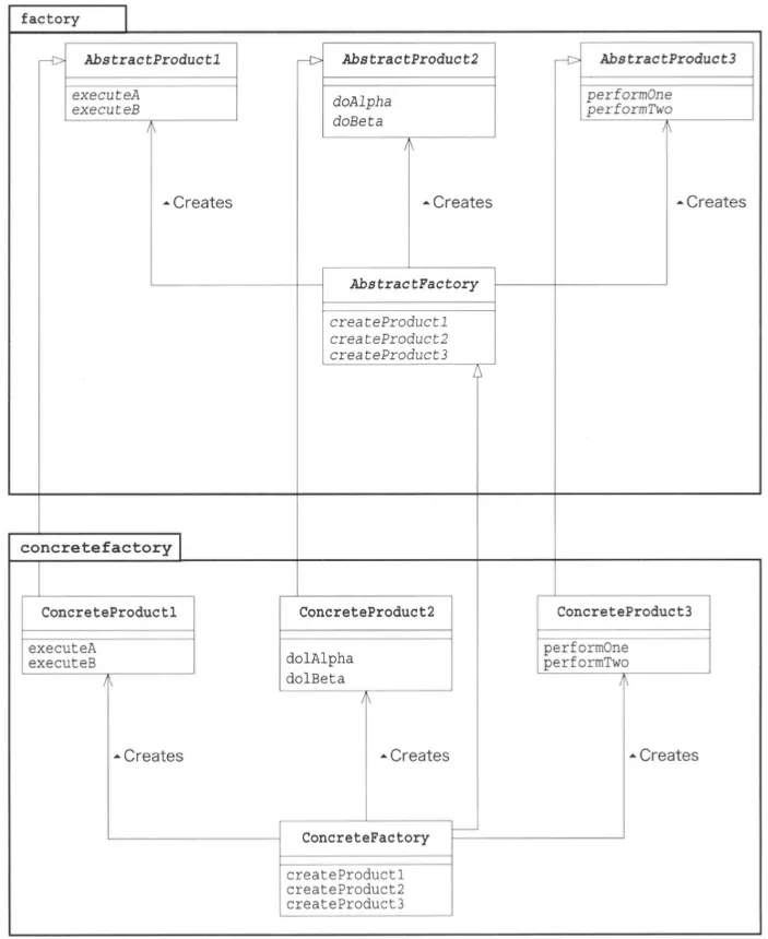 예제코드에서 정의된 추상화된 공장(Factory)를 구현해 새로운 공장을 만든다고하면 Factory,Link,Tray,Page를 상속받는 하위 클래스를 만들어서 추상 메소드를 구현하면 됩니다. 이때 아무리 공장을 추가해도 Abstract Factory부분이나 Main부분을 수정할 필요는 없습니다. 단지 구현되는 새로운 구체적인 공장부분만 변경하면 됩니다.