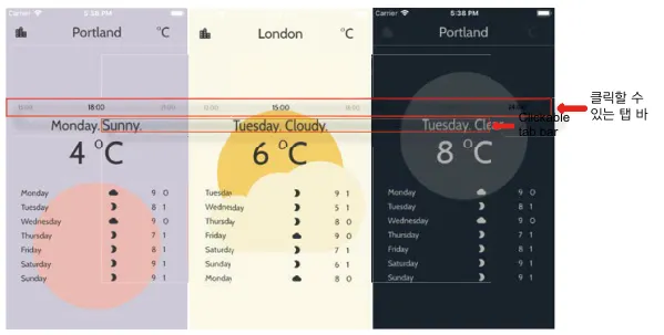 여기서 중요한 부분은 setState 인데, 날씨 앱에서 다른 시간을 선택하면 그시간에 해당하는 날씨로 UI를 다시 그린다. 이는 setState 가 픞ㄹ러터에 새로 선택된 탭에 맞는 화면을 다시 그리도록 명령하기 때문이다.