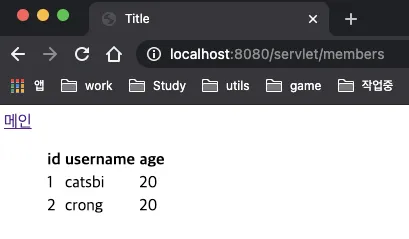 실행 URL: http://localhost:8080/servlet-mvc/members