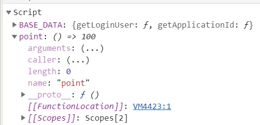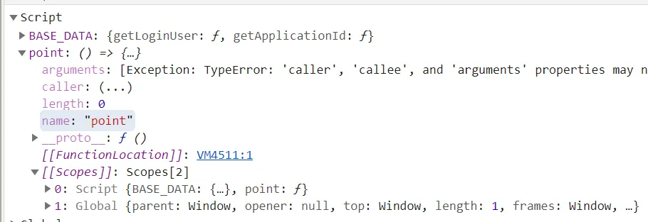scope에서 point함수 구조를 전개하면 arguments가 표시는 됩니다.