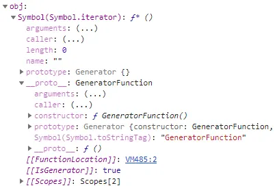 Symbol.iterator의 __proto__에 제너레이터 오브젝트가 있는 구조입니다.