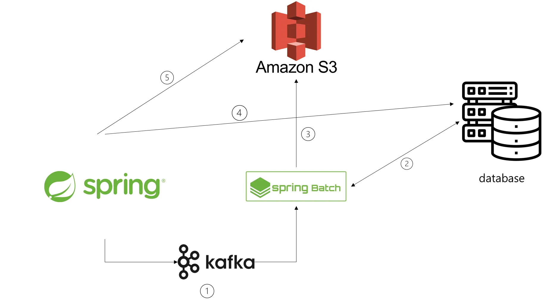그래서 Spring-batch를 이용해 서버를 구축한 뒤 Kafka로 대용량 파일 처리 요청을 받아 S3에 업로드한 뒤 메인 서버에서 다운로드 받게 하는 구조를 생각했다.