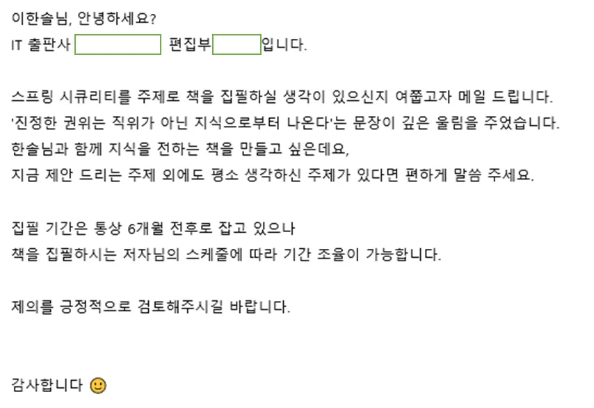 정말 뜬금없는데 책 집필 제안이 왔다.