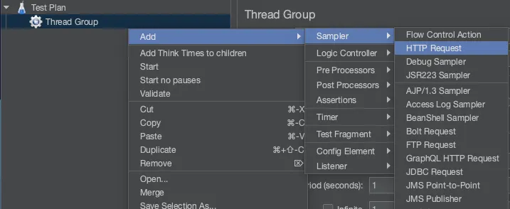 → 여기서는 HTTP Request테스트를 기준으로 작성하며 만약 다른 부분을 테스트해야한다면 Sampler부터 변경해서 만들어주면 된다.