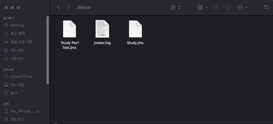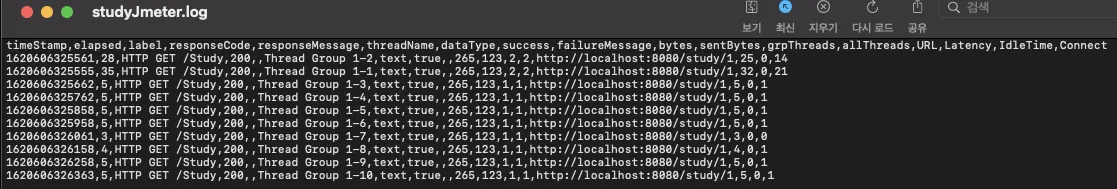 test output studyJmeter.log파일 확인