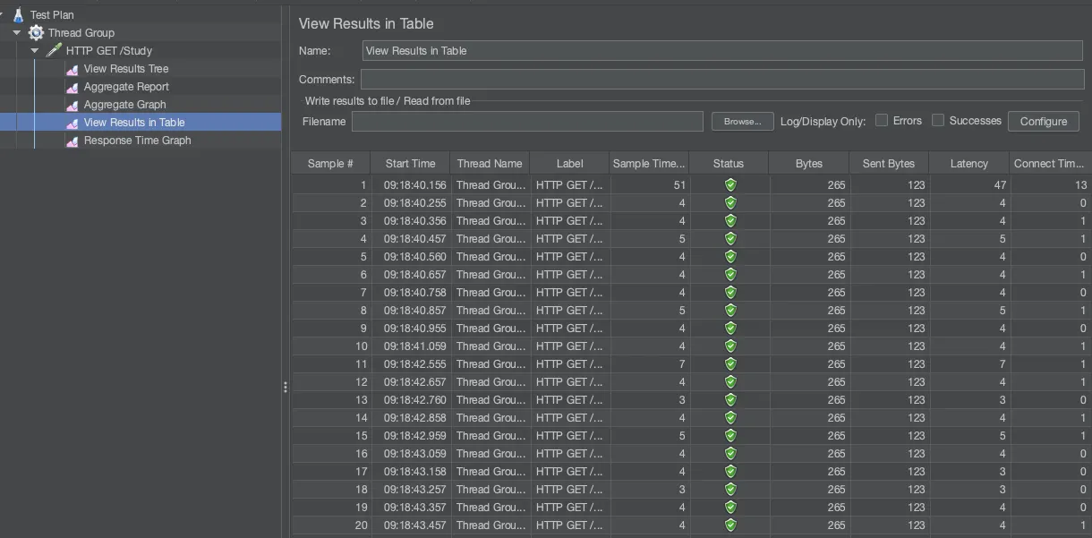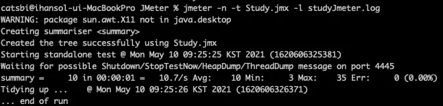 → jmeter -n -t Study.jmx -l studyJmeter.log