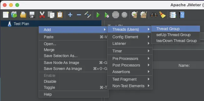 JMeter에서 Thread Group 생성