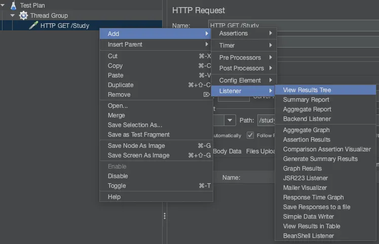 Listener: 요청에 대한 응답을 보고 응답 하나하나의 시간을 계산하거나 응답들을 조합해 그래프를 그린다.