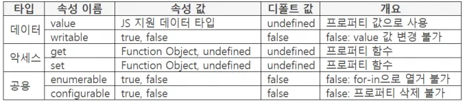 프로퍼티마다 상태를 가지고 있으며 상태란 변경,삭제,열거 가능여부를 말합니다.