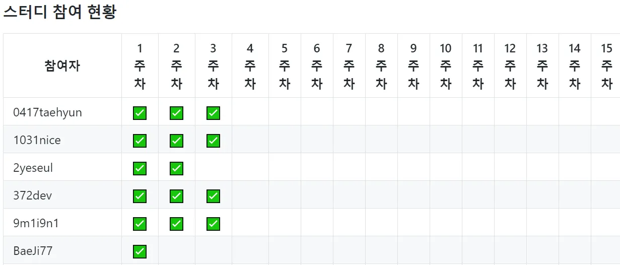 : 스터디 github의 README를 보면 현재 과제에 참가중인 참가자와 참가현황이 업데이트되며 나온다. 이걸 직접 코드로 구현해보는 것인데, GitHub API 라이브러리를 이용해서 구현한다.