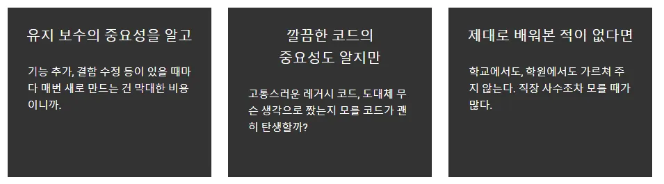 클린 코드에 대해 소통할 수 있는 지식. 적어도 듣고 이해는 할 수 있을 정도의 지식