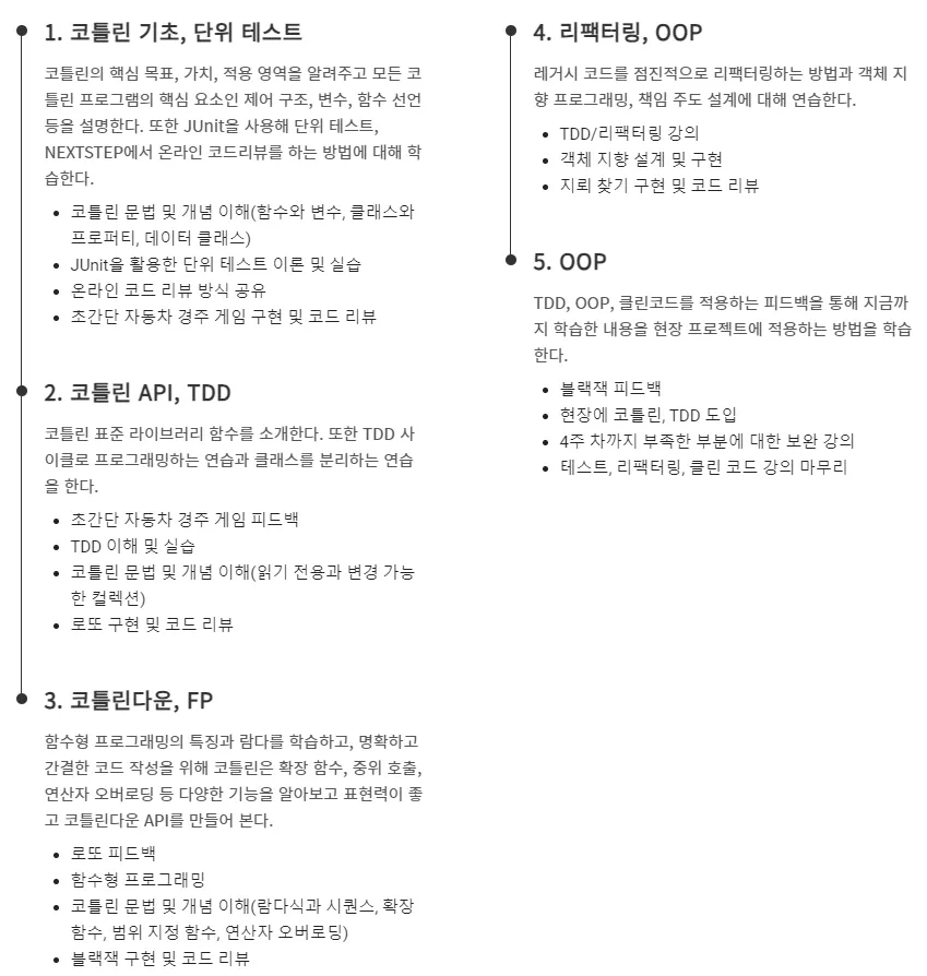 기존에 리딩하던 DDIA 스터디 종료 회고및 회식자리에서 지인의 코틀린 추천과 NextStep의 코틀린 과정이 곧 열린다는 내용을 공유하며, 하자는 얘기가 나왔는데 사실 그 시점까지도 코틀린으로 코드 한 줄 작성해본적이 없어서 고민만 하고 있었는데 지인이 결제했다고, 톡을 하게 되고 엉겁결에 같이 결제를 해버리면서 듣게 되었다.