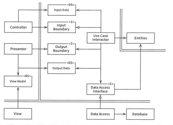 여기서 제대로된 유스케이스 객체라면, 데이터를 사용자 혹은 또 다른 컴포넌트와 통신하는 방식에 대해 눈치챌 수 없어야 한다. 유스케이스의 코드가 HTML이나 SQL에 대해 알 필요도 없고 알아서도 안된다.