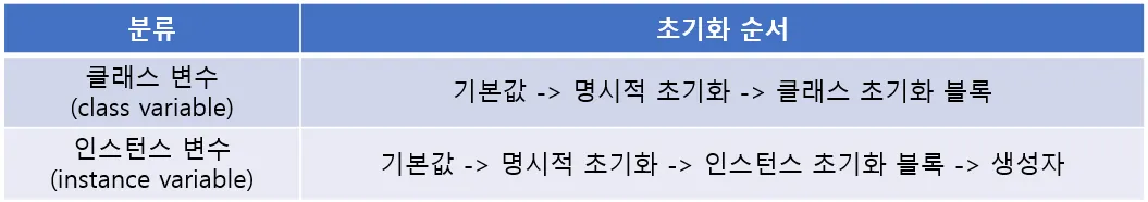 : 초기화 블럭은 클래스 초기화 블럭과 인스턴스 초기화 블럭으로 나뉜다.